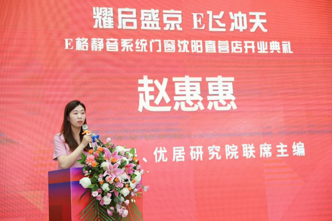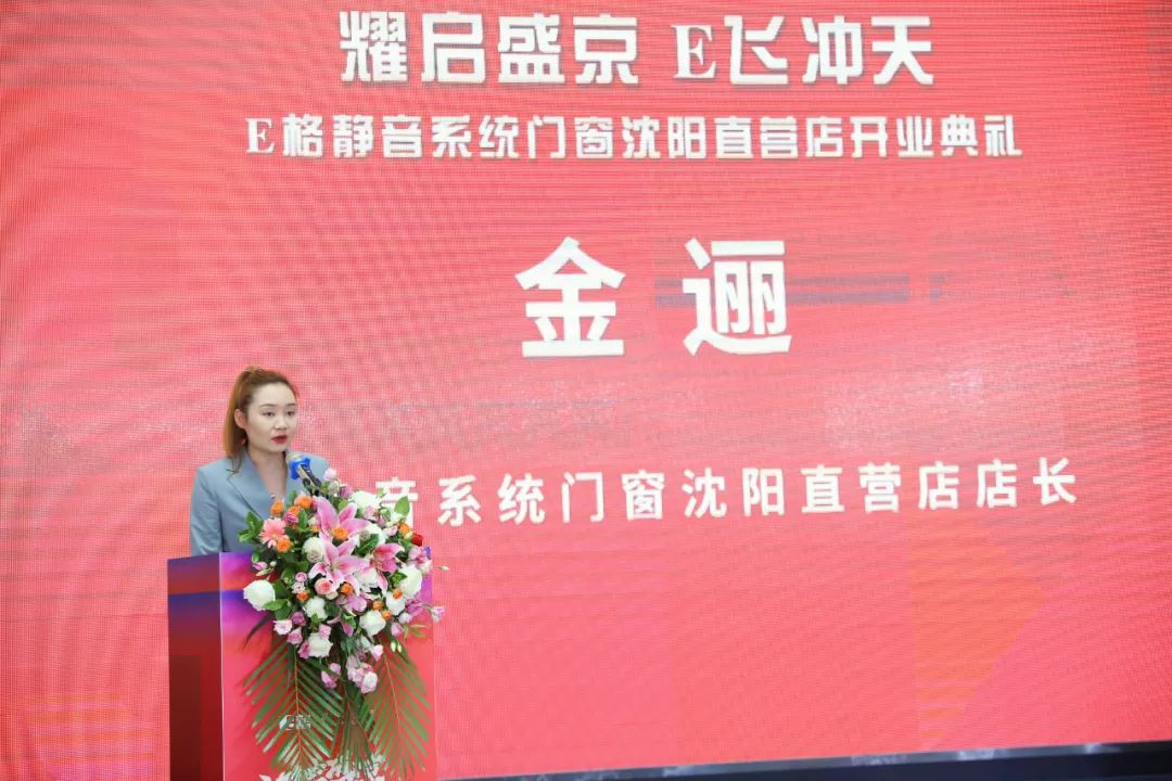 在開業(yè)盛典的最后,E格靜音系統(tǒng)門窗沈陽直營店店長金邐女士上場致辭,她表示,E格沈陽直營店將以靜音門窗市場為導向,以E格“超靜音、高顏值、好品質”的產品為基石,為沈陽消費者打造理想家居生活的同時,也為沈陽消費者帶來切實開業(yè)福利。即日起至6月28日,E格沈陽直營店驚喜推出多重好禮,惠享不停,不容錯過!